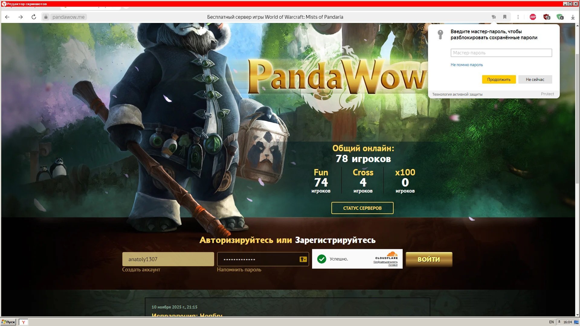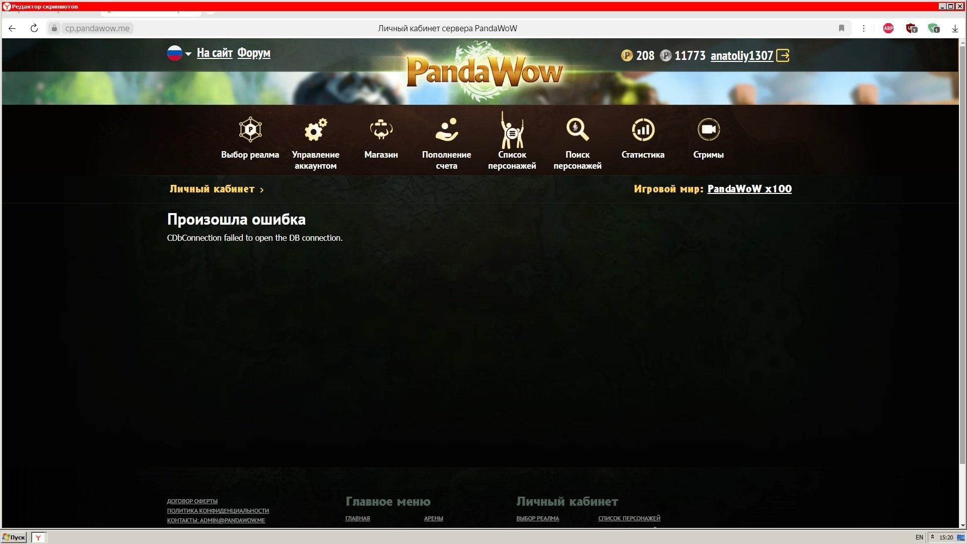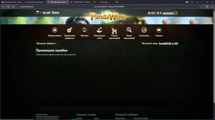 Добрый день! Прошу оказать помощь в следующей ситуации: недавно играю на вашем сервере (аккаунт: zolotukhin), все было в порядке, проблем с доступом не наблюдалось (на игру и лаунчер не было нареканий, последнюю версию скачал и установил на днях). 02.12 и 03.12 совершил несколько покупок на сайте магазина, в т.ч. 3 декабря приобрел персонажа на сервере pandawow x100. После покупки на следующий день (сегодня 04.12) исчезли все персонажи на странице входа, а при попытке просмотреть информацию о персонажах в личном кабинете на сайте — вылезает ошибка. Прошу разобраться в ситуации и заранее благодарю за помощь.