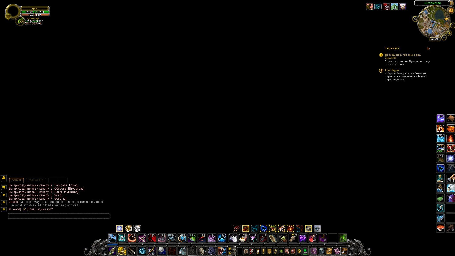 сдавал дежурный квест "око бури" в штормграде после 80 лвла который дается автопринятием сдал, заглянул в воды, отменил ролик и все черный экран перезагрузка полная перезагрузка игры не помогла другие персы на аккаунте в норме... анстак пробывал отправляет на кладбище но экран так же черный
