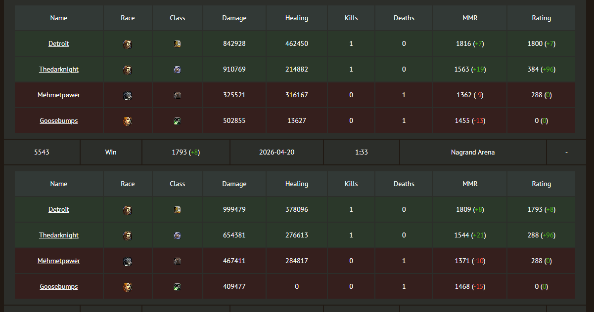 Kinda unfortunate attempt of protecting urself but if you look at the games I've not seen 1 single fine game vs 550 people or 1 that the other didn't join or has no gear and nice DMG and healing games take like 30seconds?Wild wild..