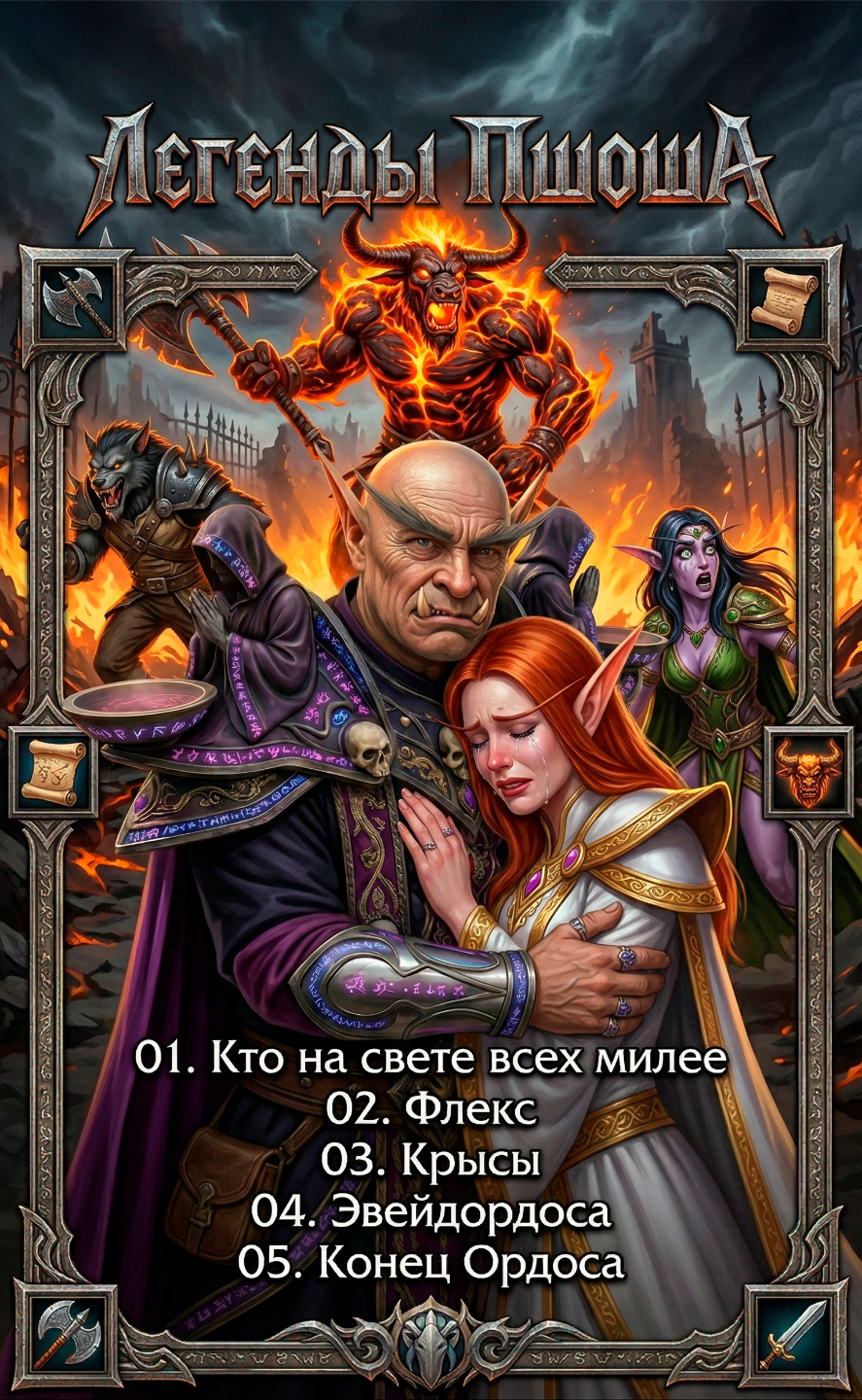 Запорожье, хитрый вар, Применив коварный дар, Пишет в чат админу Буке, Чтоб не умереть со скуки: Свет мой, Бука, подскажи, Логи серва покажи: Кто на пшоше всех милее, Всех дамажней и хитрее? Чей рывок в бою больней? Я ли круче всех парней? Бука, девушка-ГМ, Отвечает без проблем: Ты, конечно, спору нет; Самый подлый на весь свет. Всем ты пакостишь умело, Но скажу тебе я смело: Есть на сервере тут Дана, Без подвоха и обмана! У нее сто персонажей: Эльфов, орков, светлых стражей. Скилл хромает — ну и пусть! Разгоняет Дана грусть. Кнопки путает порой, Но за нубиков — горой! Всем поможет, всё поймет, Хоть и ДПС не тот! С ней играет варлок Фель, С ним не страшна ей метель: Он шкафы ей ставит быстро, Камень душ кидает часто. Если Дана упадет — Фель подняться вмиг дает. Так что, хитрый Запорожье, Не строй гневные ты рожи! Хоть ты в ПвП страшней, Дана на пшоше всех милей! Вар от гнева потемнел, Сделать пакость захотел: Я вам, нубы, покажу! Ваш уютный флекс сложу! В рейд Осада, в жесткий флекс, Собрала тут Дана всех. Завела она друида, Чтобы хилить без обиды. Кнопок много — ну и пусть! ХОТами разгонит грусть! Тут и пуги, и друзья, Вайпаться никак нельзя. Только бафнулись бойцы — Вар летит во все концы! Чардж в Гарроша, прыжок, крик: Ниндзя-пулл в тот самый миг! Босс взревел, топор поднял, Всех по лужам раскидал. Дана в панике молчит, Только мышкою стучит! Но не спит товарищ Фель, Взял Гарроша на прицел. Камень душ на Дану — хлоп! Чтоб не снес начальник лоб. Ставит гейты для братвы, Чтоб бежали от беды. Запорожье в кливе мрёт, Злобно спам он в чатик шлёт. Тут ГМ вступает в бой — Бука пишет: Боже ж мой! Запорожью — мут на час, Чтоб не вайпал больше нас! Отправляйся в Даларан, Успокой свой ураган. Дана ресс всем раздает, Рейд из лужиц восстает. И смущается она: Я тут хилила... как бревна... Снова макрос не нашла, Чуть весь рейд не унесла! Пуги в чате: Ерунда! С Даной весело всегда! Снова пулл, Гаррош упал, Каждый лут свой разобрал. Пусть скилла у Даны нет, Для всего пшоша — она свет! Дни идут, Гаррош забыт, Вновь у Даны грустный вид. У неё есть клан, семья, Где все нубики — друзья. Имя гильдии простой — Атаманы — звук крутой. В банк заходит не спеша, И сжимается душа: Смотрит Дана в инвентарь — Спёрли весь гильдейский ларь! Ни руды, ни зелий нет, Померк вмиг весь белый свет! Дана в чатик слёзы льёт: Крыса в гильдии живёт! Вы не люди, просто мрак! Крысы! Делают же так! В чат рыдает на весь Пшош: Это в спину подлый нож! Я ж вас всех качала, ну! А теперь иду ко дну… Всё, терпенью вышел срок! Всем воришкам дам урок! Кнопку Кик нажав в слезах, Сеет панику и страх. Половину прогнала, Так обида тяжела! Глядь — а хитрый Запорожье В банке строит злые рожи. Это он твинка вкачал, Весь общак в ночи украл! Тут ГМ, девица Бука, Говорит: Какая мука! Посмотрю я в свой журнал, Кто гильд-банк обворовал. Смотрит Бука: Всё понятно! Всё вернётся вмиг обратно. Банк мы Дане возвратим, Вару — бан на год вкатим! Дана слёзы утирает, Снова пугов собирает. Фель смеётся: Ерунда! Справимся со всем всегда! И на Пшоше мир да гладь, Можно заново играть. Дни идут, и вот опять Дана стала рейд сбирать. Остров ждет Вневременной, Там запахло вновь войной. Сам Ордос горит огнём, Рейд стоит перед вождём. Только бафнулись чуток — Запорожье дал Рывок! Агрит босса — и бежать, Чтобы рейд весь обломать. Босс за варом — и назад! Вот эвейд, и вайп, и ад! Раз эвейд, и два эвей