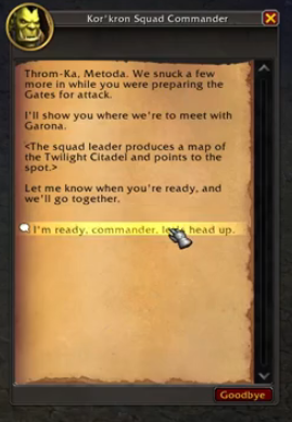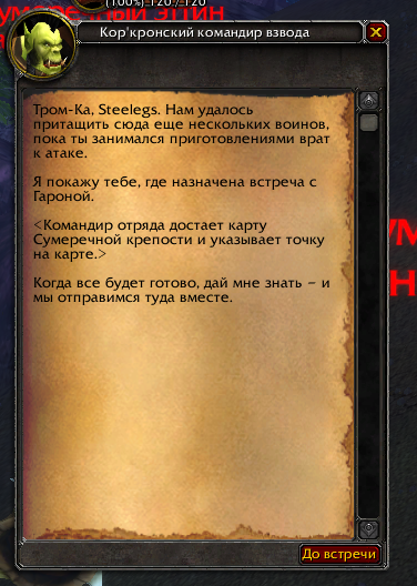 1. https://www.wowhead.com/ru/quest=27503/штурм-крепости 2. Квест береться, но не запускаеться дальше 3. Должно быть https://youtu.be/khw_9VMUbXY при разговоре с командиром отряда появиться должно а у меня 4. х100