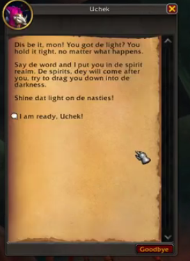 1 https://www.wowhead.com/ru/quest=28170/ночные-кошмары#videos-english 2 Квест береться но невозможно поговорите с Учеком в Глотке который перекидывает мир духов 3 https://youtu.be/h38bB2ca0IE 4 должно а у меня так 4 х100
