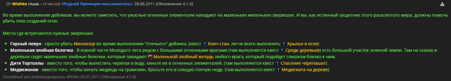 1. https://www.wowhead.com/ru/quest=25310/большее-из-зол 2. Нельзя использовать предмет https://www.wowhead.com/ru/item=54814/талисман-огненного-господства. Без него босса никак не убить на 81 уровне. 3. х100