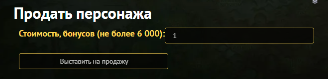 Здравствуйте. Вам нужно отправить всю голду на другого персонажа, чтобы все было 0.0.0, заходите в личный кабинет и нажимаете "Продать". Указываете стоимость и все: