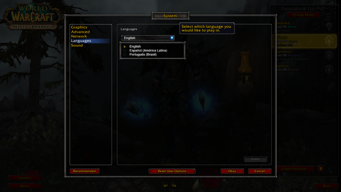 Здравствуйте. Если у Вас в папке с игрой, а именно в папке Data - есть папка с названием ruRU, то сделайте это: Запустите игру через PandaWoWLauncher (который должен находиться в папке с игрой). Если нету папки ruRU, то скачайте её по этой ссылке.