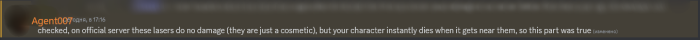 2. when the player enters this laser, he receives die (as an exception, I think you need to add pets and totems etc.)