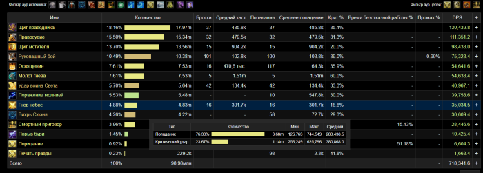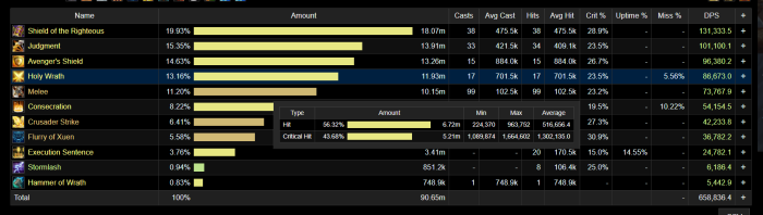 14. "Гнев небес" в базах данных я не нашел его. идентификатор 119072 Наносит меньше урона , чем должен https://www.warcraftlogs.com/reports/yRvTathJxdVDWFMc#fight=15&type=damage-done&source=3 значения силы атаки почти идентичные https://www.warcraftlogs.com/reports/BcNw3RqdmjAt9g6z#fight=13&type=damage-done&source=1 у игрока на ретейле урона данные способности в 2 выше за одинаковое количество времени . Вероятней всего неверное скалирование от силы атаки. х5 Всегда 7/10