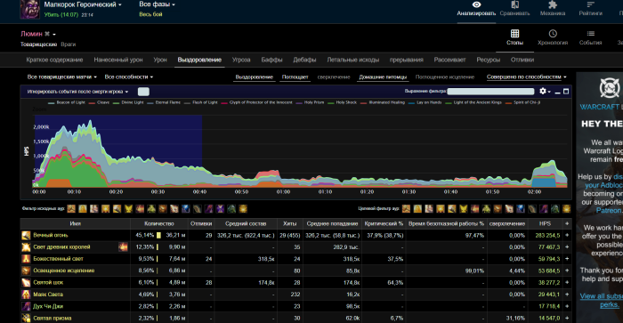 13. https://www.warcraftlogs.com/reports/9Xfamwz2bVqJn7My#fight=15&type=healing&source=16 гений, а теперь иди сравнивай логи офы и у нас, посмотри как люди что жмут и ты всё поймешь, у типов avg факела у большинства выше