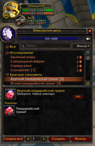 Ювелирка зависла, камни делаю прогресс не поднимается. Игровой мир: "PandaWoW x100 Персонаж Ивандрагго.