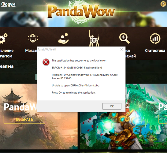 Скачал exe'шник лончера в папку с игрой, запустил, он докачал файлы, при нажатии на кнопку "играть", открывается окно с игрой без изображения и долго висит. затем вылазит ошибка: