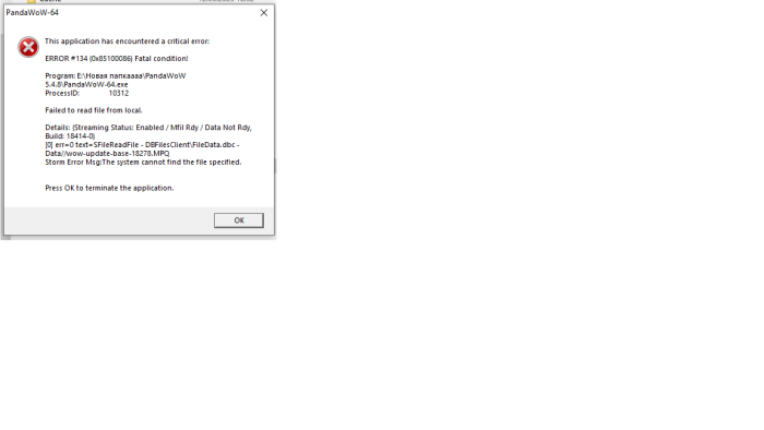 игра запускалась, но висела на персонажах и давала ошибку 132. по счет этой ошибки нашел статью и выполнил все пункты. теперь вот эта ошибка -