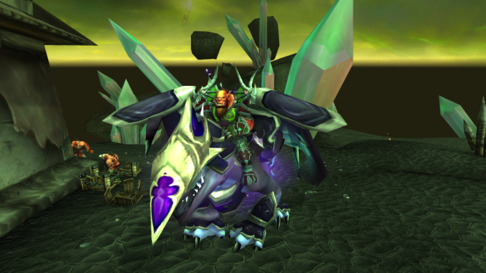 1) https://db.pandawow.me/?quest=11063 2) х100 3) Нет локализации задания: Так ты хочешь примкнуть к усмирителям небес? Ты неплохо себя показал в клане Драконьей Пасти, но это ничего не значит тут, в небесах Запределья. Вопрос в том, умеешь ли ты летать? Полет – это не просто взгромоздиться на спину дракону Пустоты и отвезти в форт партию кристаллов, с этим-то любой дурак справится. Полет – это быть лучшим, первым среди орков. К западу отсюда есть шесть пилотов, победи их всех – и я пожалую тебе крылья усмирителя небес. Судя по скриншоту, сидит на драконе, у Вас просто стоит.